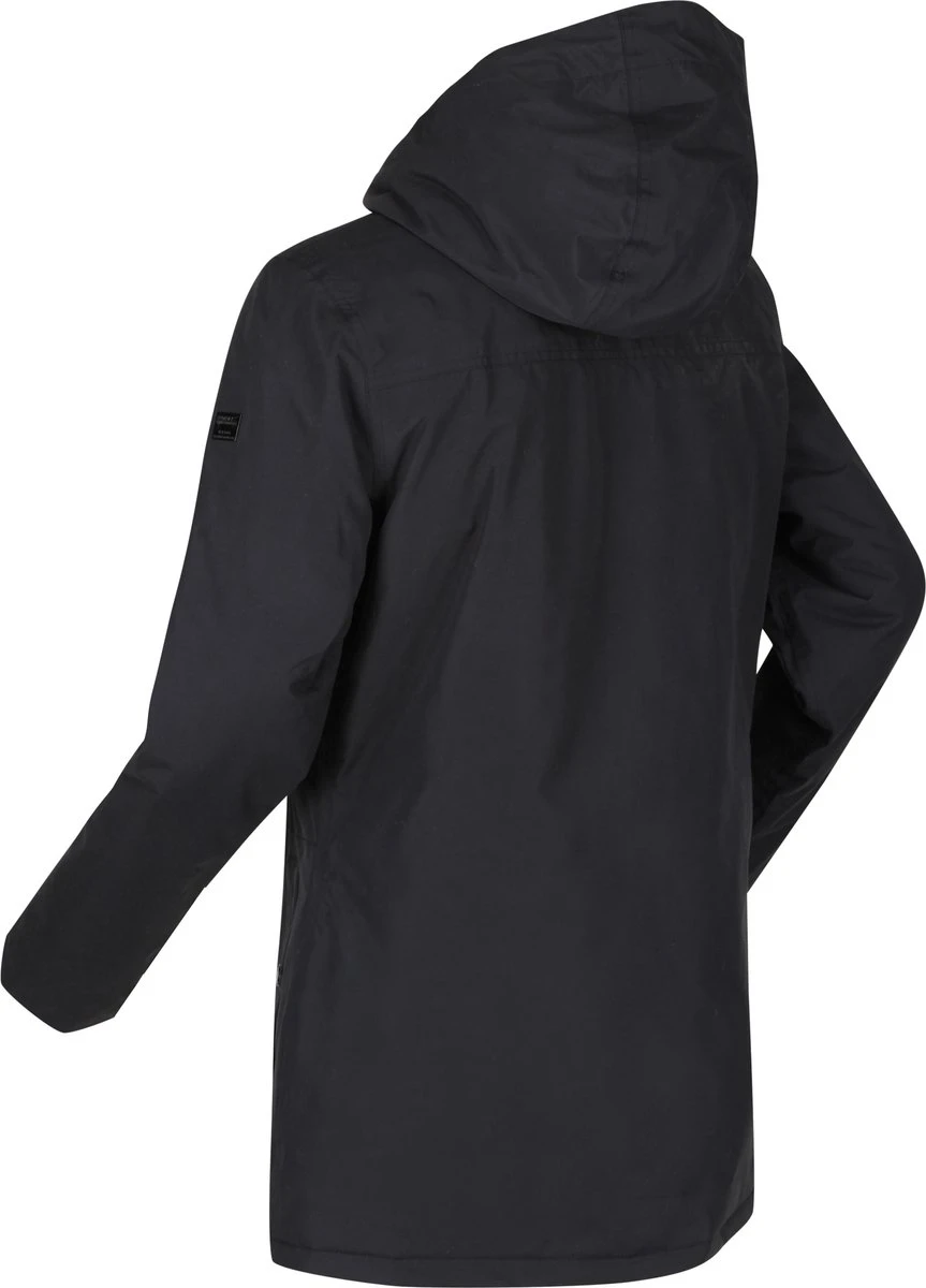 Deze zwarte winterjas heeft vele aangename eigenschappen om je warm te houden. Zoals een waterafstotende laag, winddichte eigenschappen, getapte naden en een imitatiebont gevoerde capuchon en ruggedeelte. Daarnaast is het jack ook voorzien van genoeg zakken voor persoonlijke items.